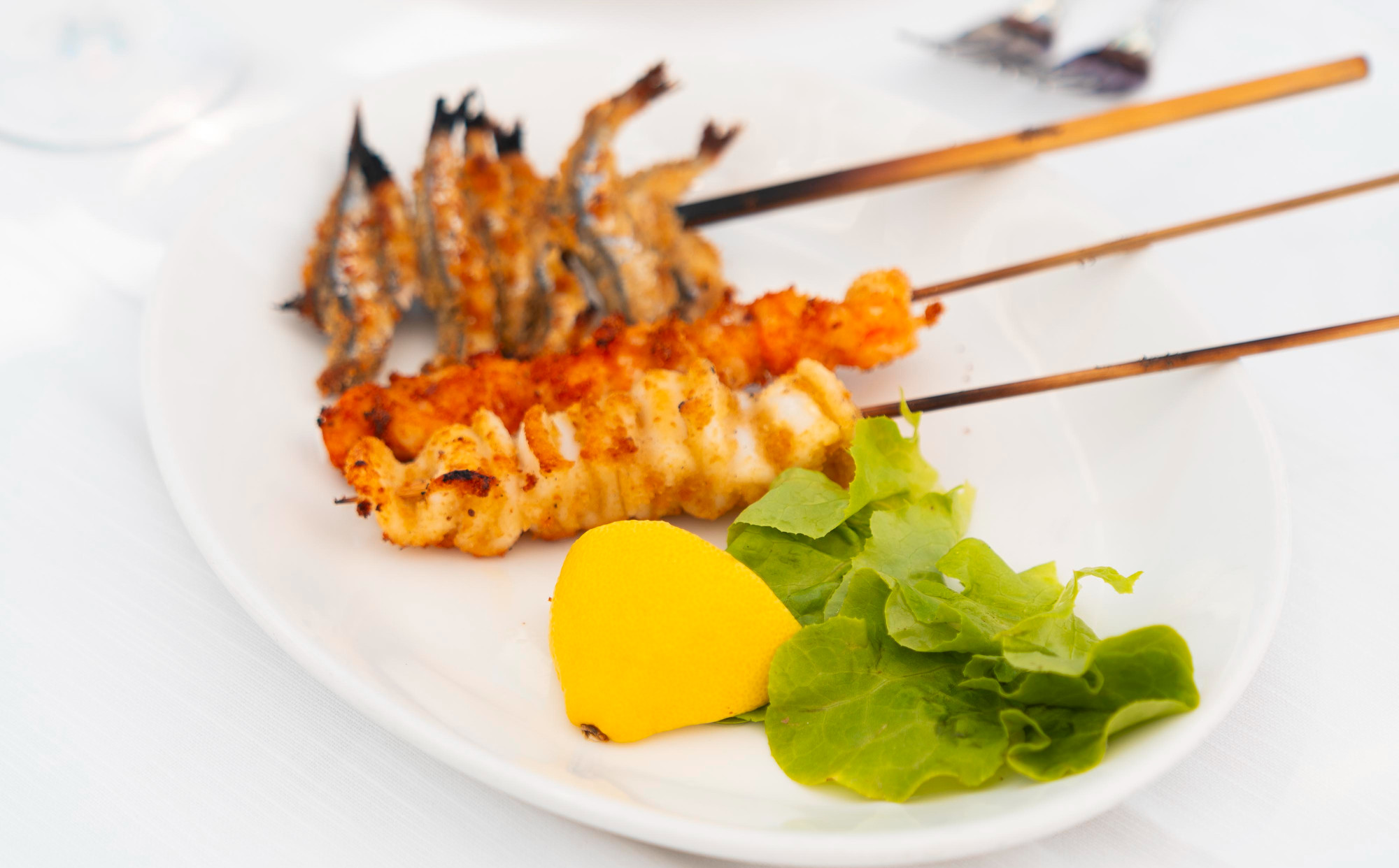 Il Risotto e gli Spiedini accompagnati da Piadina e Vino: Protagonisti assoluti della serata, cucinati a vista dai nostri chef. La freschezza del pescato dell'Adriatico si sposa con lo spettacolo del live cooking, per gustare le nostre specialità appena preparate.