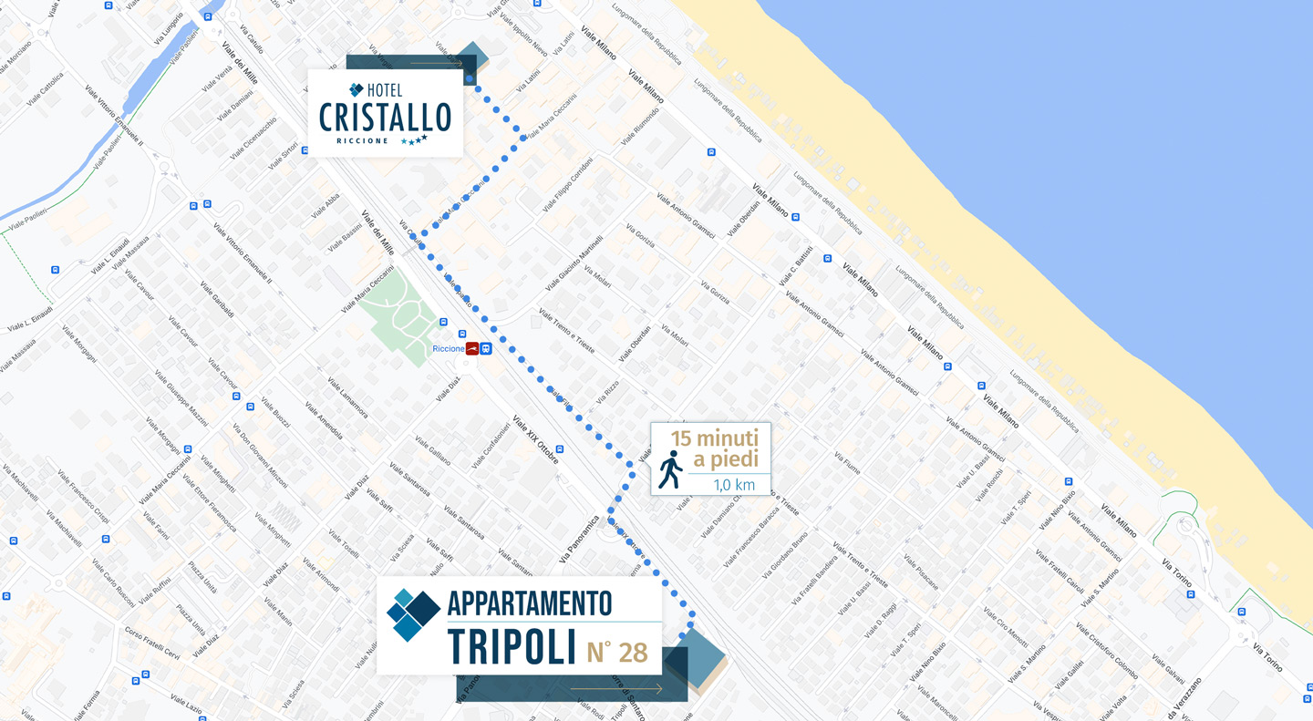 Die Wohnung befindet sich außerhalb des Gebäudes in der Via Tripoli in Riccione, im zweiten Stock und mit separatem Eingang. Die Wohnung Tripoli ist die perfekte Wahl für Paare und Familien, die einen Aufenthalt in völliger Freiheit und ohne Zeitdruck genießen möchten.
